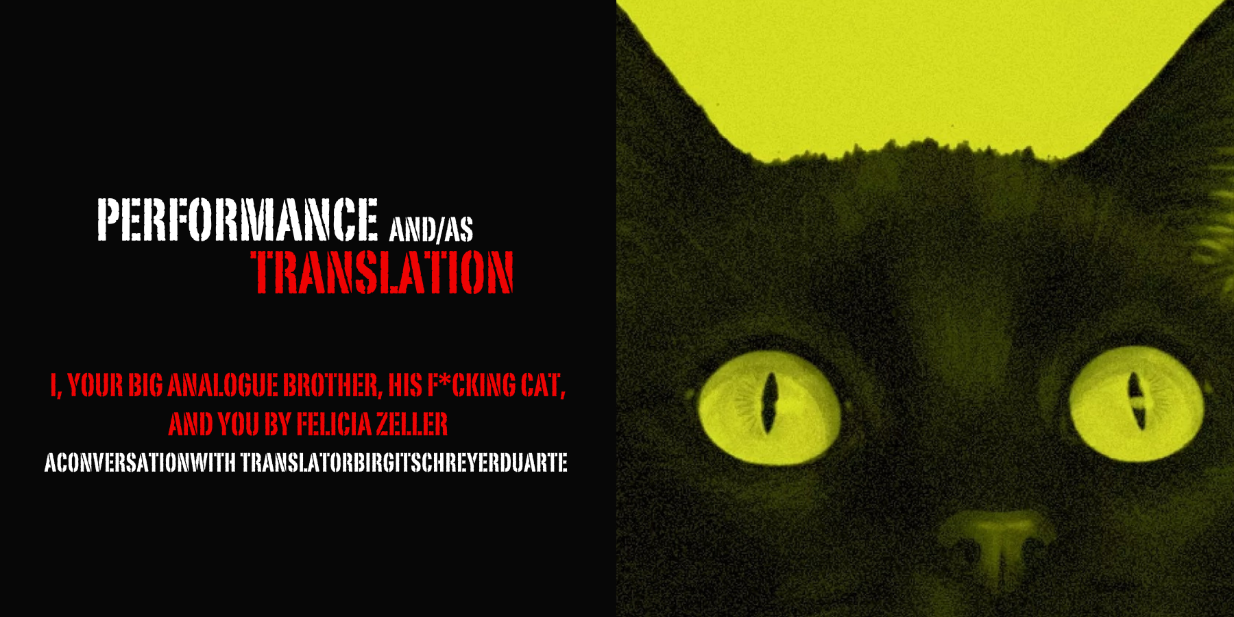 Join us for an engaging conversation exploring the artistic, linguistic, and dramaturgical processes behind translating the play I, Your Big Analogue Brother, His F*cking Cat, and You by one of Germany’s most prominent contemporary writers, Felicia Zeller. This special event offers a behind-the-scenes look at how a complex contemporary work moves from one cultural and linguistic context to another.